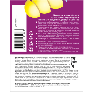 Применять только по назначению согласно инструкции. При неправильном применении беруши могут травмировать слуховой канал. При возникновении дискомфорта во время применения следует незамедлительно вынуть беруши из ушей. Не разрезать и не разрывать беруши. Не глотать. Дети младше 12 лет должны применять беруши под присмотром родителей.