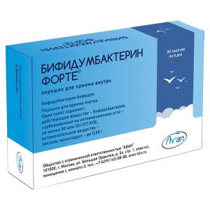 Бифидумбактерин форте® порошок для приема внутрь, 50 млн КОЕ сорбированных бифидобактерий в пакете из многослойного металлополимерного материала. По 10 или 30 пакетов с инструкцией по применению в пачке из картона. В одном пакете 5 доз.