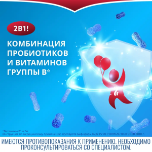 Комбинированный препарат содержит лактобактерии (LGG), бифидобактерии (Вb-12) и витамины группы В. Лечебное действие определяется свойствами компонентов, входящих в состав препарата.