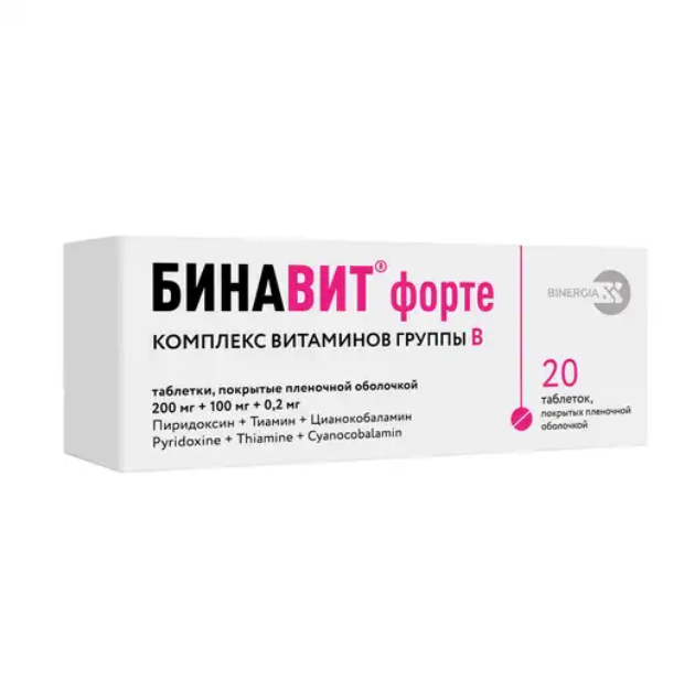 Бинавит Форте таблетки покрытые плёночной оболочкой 200мг+100мг+0,2мг №20