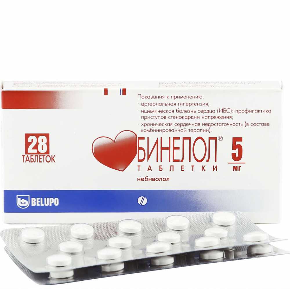 Активное вещество: небиволол (в форме небиволола гидрохлорида) — 5,00 мг