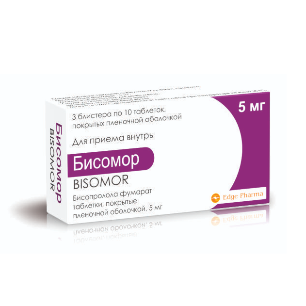 Активное вещество: бисопролола фумарат — 5 мг.