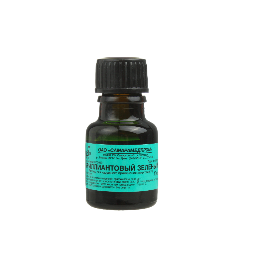 Бриллиантовый зеленый раствор для наружного применения спиртовой 1% флакон пэт 10мл (отпуск 10фл)