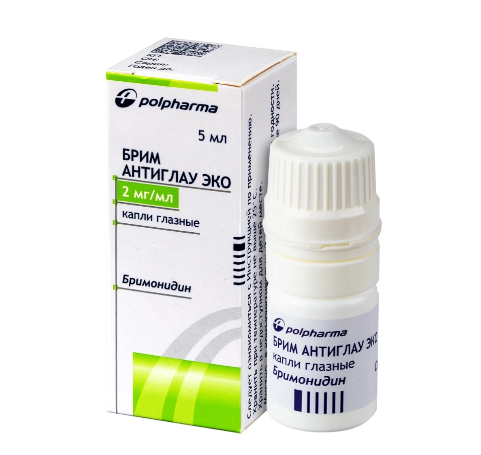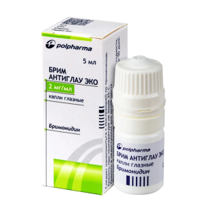 Бримонидин — селективный агонист α2-адренорецепторов. При инстилляции 0,2 % раствора бримонидина снижение внутриглазного давления составляет 10–12 мм рт. ст., максимальное снижение внутриглазного давления достигается через 2 ч, длительность действия — 12 ч.
