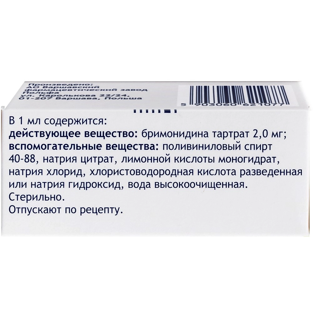 Действующее вещество: бримонидина тартрат — 2,0 мг