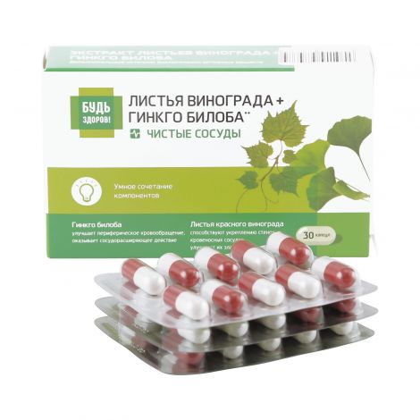 Будь Здоров! Комплекс экстрактов листьев красного винограда и гинкго билоба капсулы массой 300мг №30