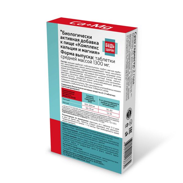 Будь Здоров! Комплекс кальция и магния таблетки массой 1300мг №20
