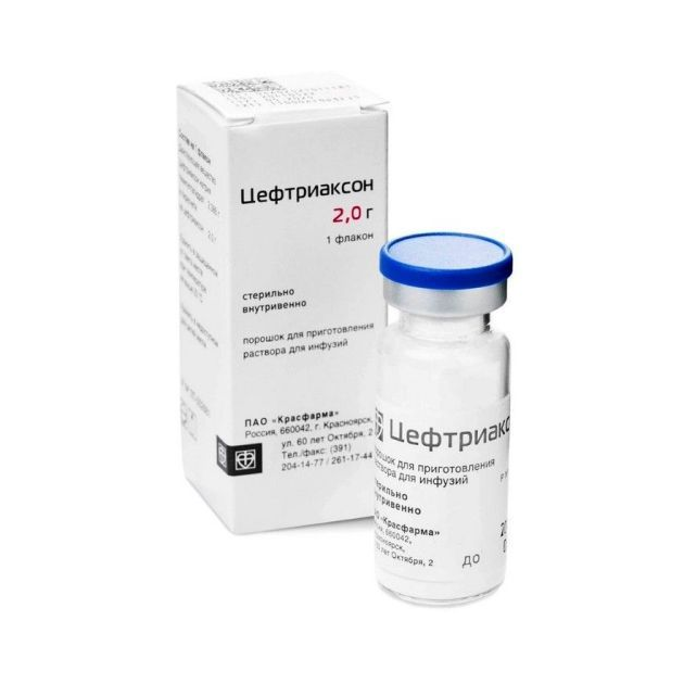 Цефтриаксон натрия в пересчёте на ;цефтриаксон ;2,0 ;г.