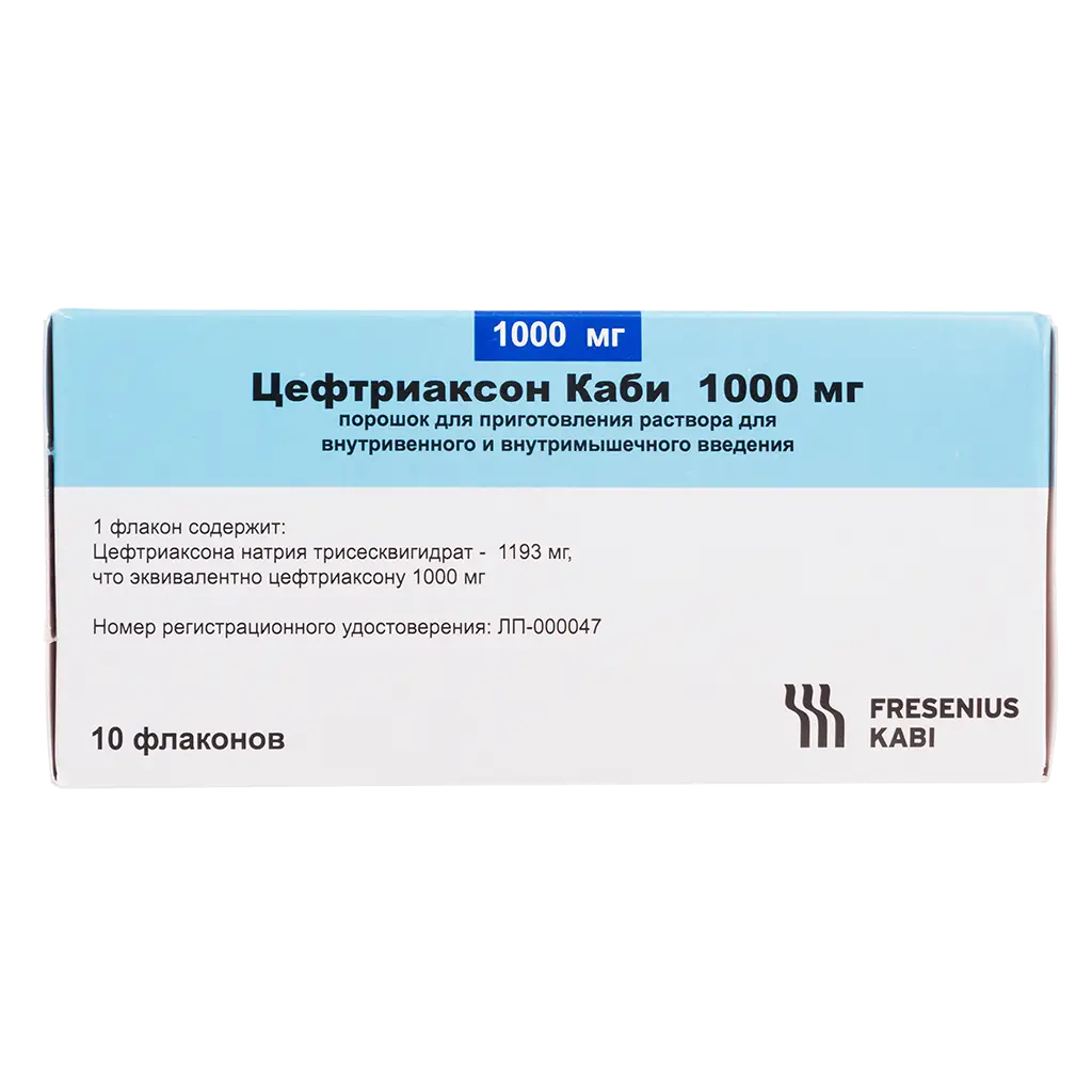 Цефтриаксон порошок для приготовления раствора для внутривенного и внутримышечного введения 1г №10
