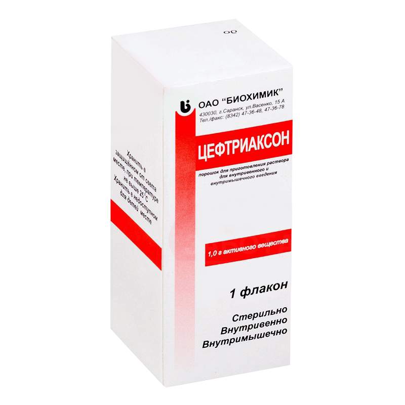 Цефтриаксон порошок для приготовления раствора для внутривенного и внутримышечного введения 1г №1