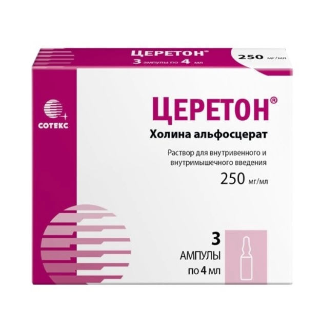 Церетон раствор для внутривенного и внутримышечного введения 250мг/мл ампулы 4мл №3