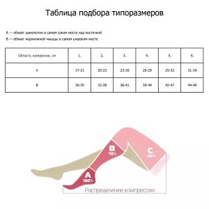 ВАЖНО! Измерение участков нужно проводить утром до появления отёчности на ногах. Размер изделия подбирать по таблице.