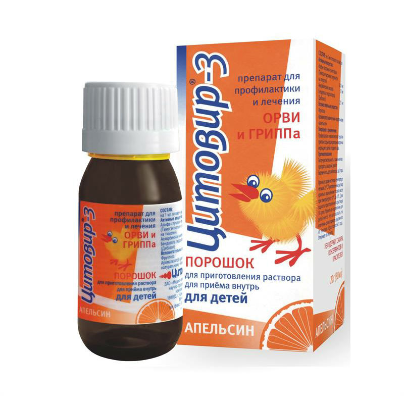 Цитовир-3 порошок для приготовления раствора для приема внутрь для детей флакон 20г