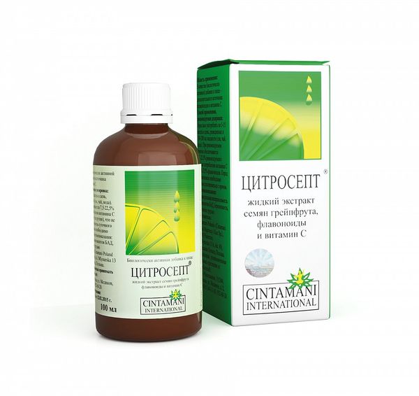 Цитросепт - биологически активная добавка (БАД) к пище, содержит натуральный экстракт семян грейпфрута (биофлавоноиды и витамин С). Обладает антиоксидантным, детоксицирующим, гиполипидемическим, противовоспалительным, гепатопротективным, а также антибактериальным, противогрибковым и противовирусным действием.