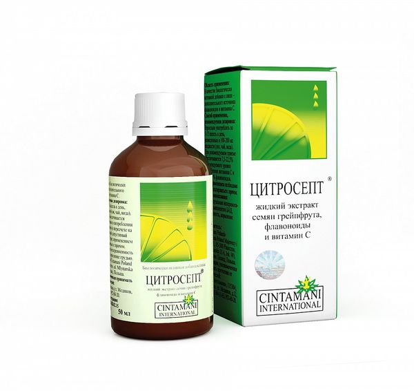 Цитросепт - биологически активная добавка (БАД) к пище, содержит натуральный экстракт семян грейпфрута (биофлавоноиды и витамин С). Обладает антиоксидантным, детоксицирующим, гиполипидемическим, противовоспалительным, гепатопротективным, а также антибактериальным, противогрибковым и противовирусным действием.