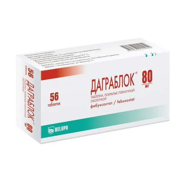 Действующим веществом препарата Даграблок® является фебуксостат, который относится к группе противоподагрических средств — ингибиторов ксантиноксидазы. Фебуксостат используется для лечения подагры — заболевания, связанного с избыточным накоплением мочевой кислоты (уратов) в организме.