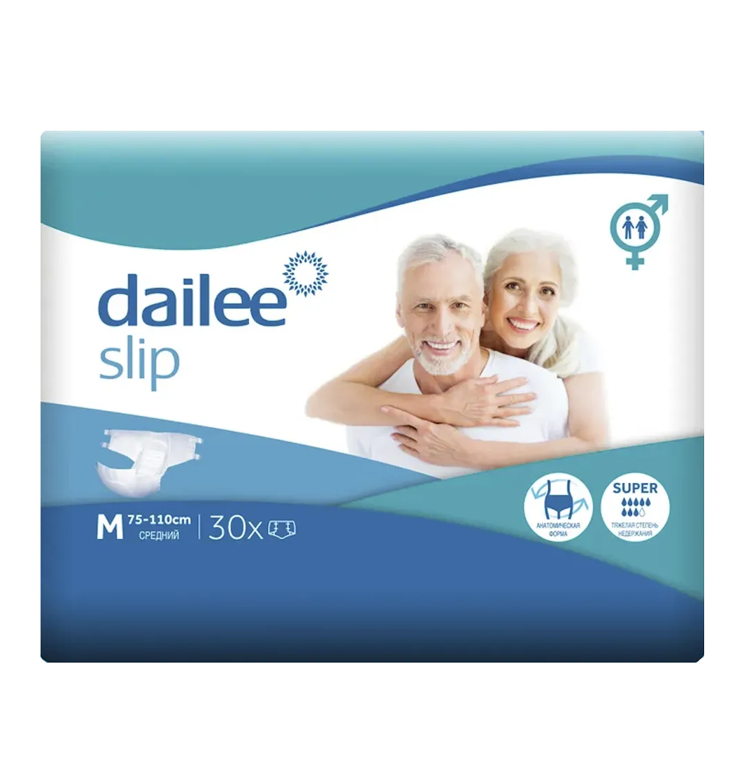 Подгузники Dailee Super предназначены для ухода за лежачими больными и людьми, страдающими средней и тяжелой степенью недержания мочи и кала.