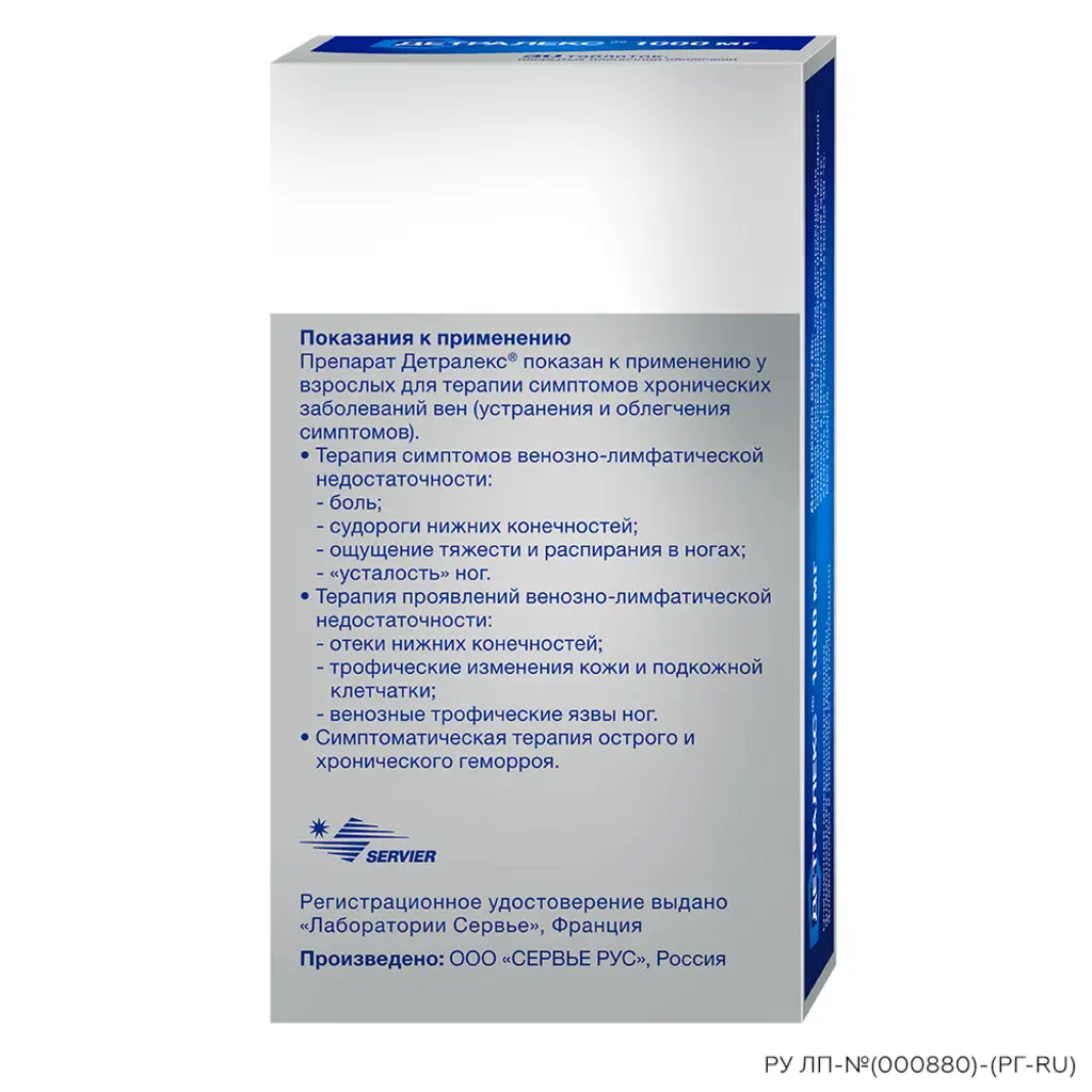 Детралекс показан для терапии симптомов хронических заболеваний вен (устранения и облегчения симптомов).