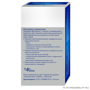 Детралекс® показан для терапии симптомов хронических заболеваний вен (устранения и облегчения симптомов).