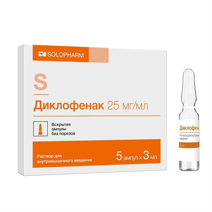 Диклофенак раствор для внутримышечного введения 25мг/мл ампулы 3мл №5