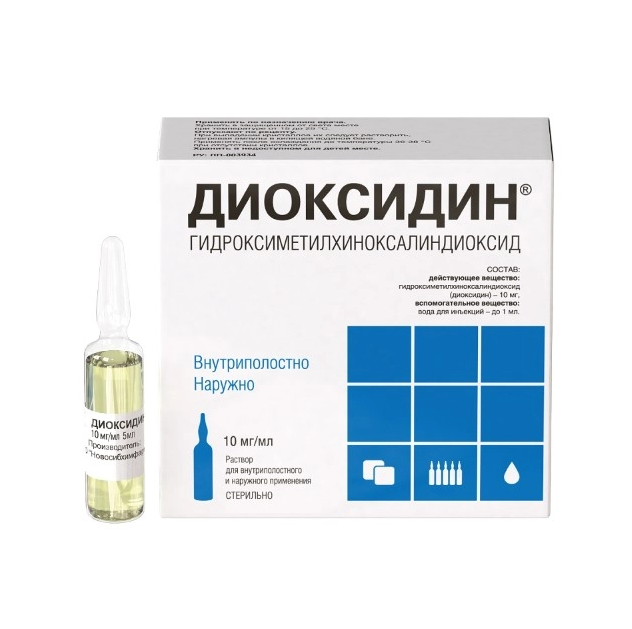 Диоксидин назначают в условиях стационара. Применяют наружно, внутриполостно.