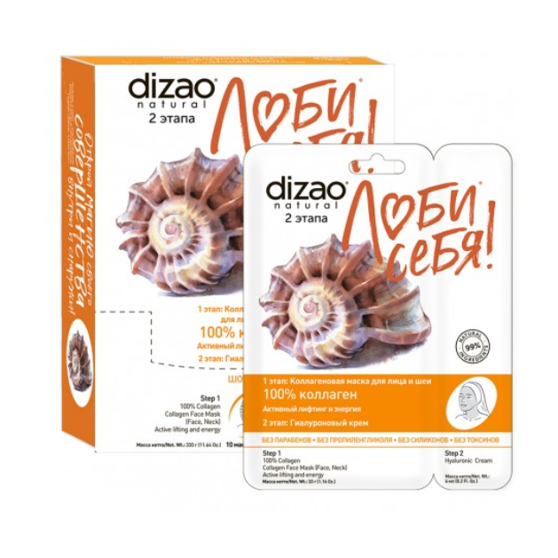 Dizao двухэтапная коллагеновая маска для лица шеи и век 100% Коллаген №10