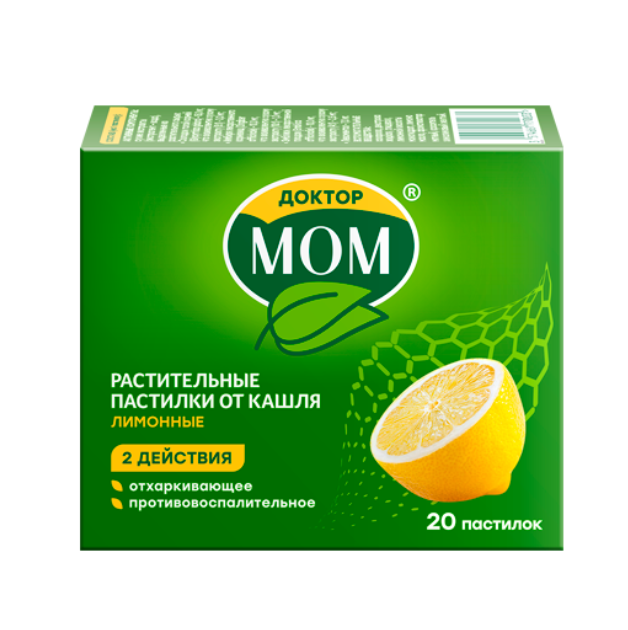 Доктор Мом растительные пастилки от кашля лимонные №20