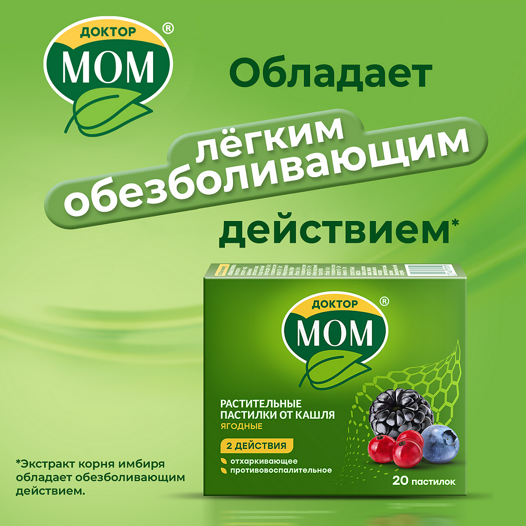Доктор Мом растительные пастилки от кашля ягодные №20