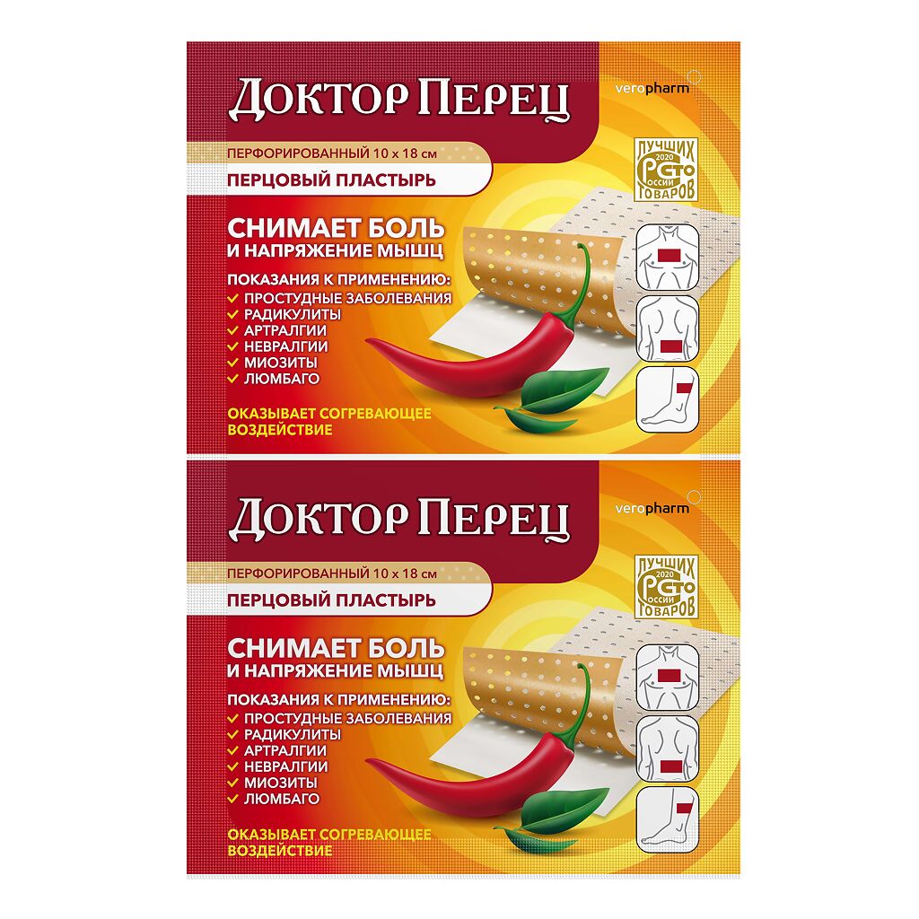 Перцовый пластырь Доктор Перец предназначен для использования в качестве местнораздражающего и отвлекающего средства при радикулитах, миозитах, невралгиях, люмбаго, артралгии (болях в суставах), простудных заболеваниях.