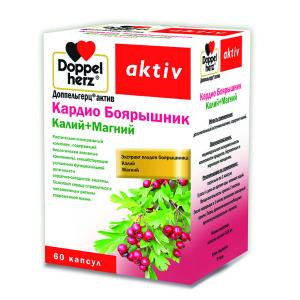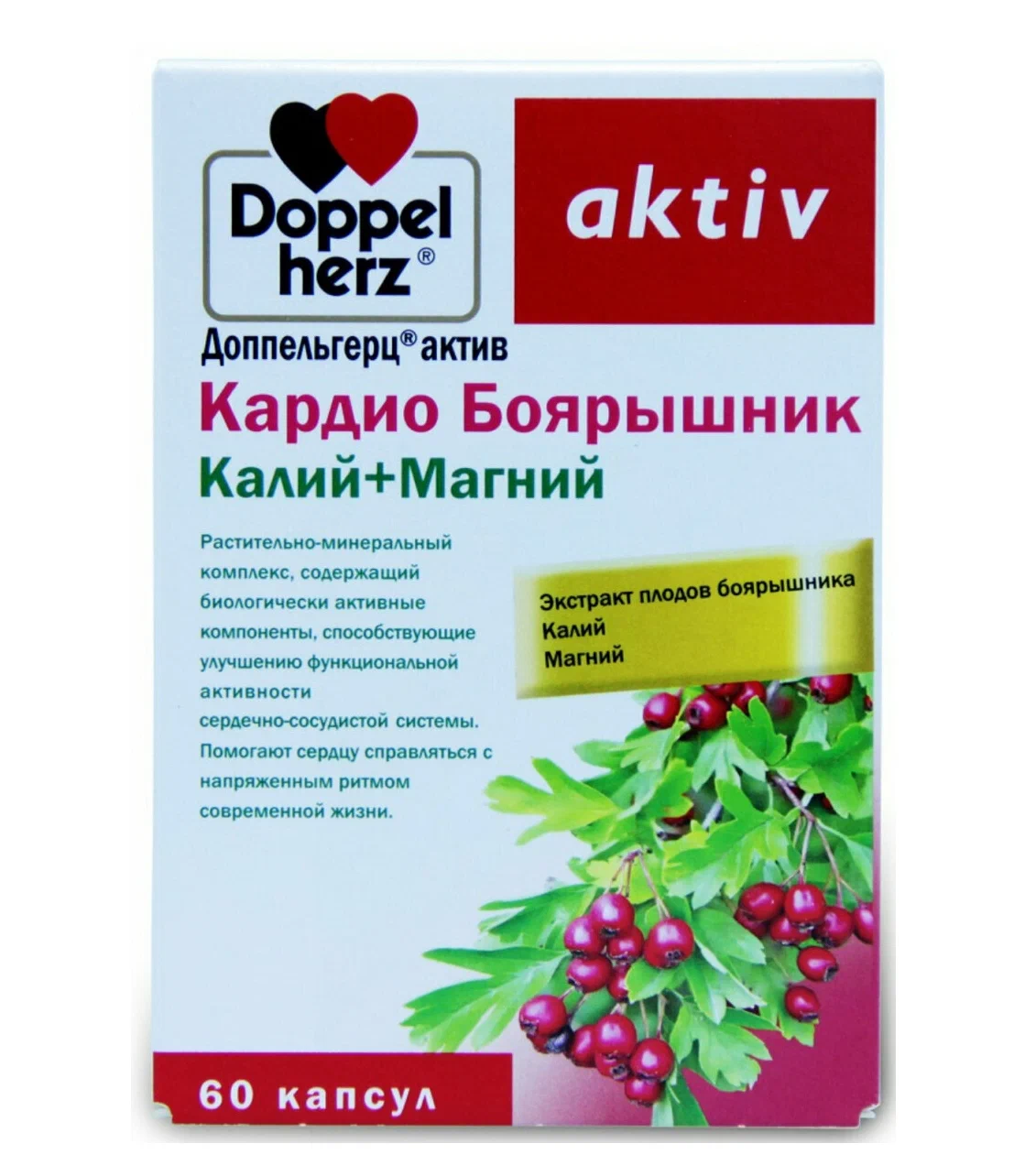 Калия гидрогенкарбонат (калий), желатин (загуститель), магния оксид (магний), экстракт плодов боярышника, диоксид кремния аморфный (агент антислеживающий Е 551), соли магния жирных кислот (эмульгатор Е 470), оксид железа (краситель Е 172), диоксид титана (краситель Е 171).