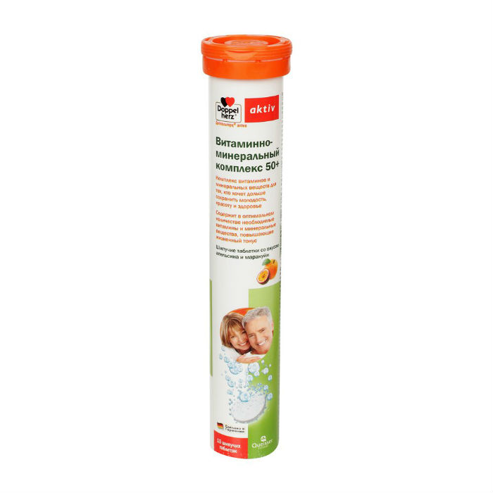 Доппельгерц актив Витаминно-минеральный комплекс 50+ таблетки шипучие со вкусом апельсина и маракуйи массой 7000мг №15