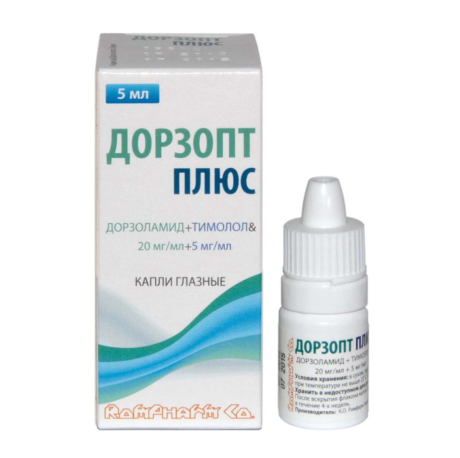 Противоглаукомный препарат, содержит два активных компонента: дорзоламид и тимолол, каждый из которых уменьшает повышенное внутриглазное давление за счёт снижения секреции внутриглазной жидкости. Совместное действие этих веществ в составе комбинированного препарата Дорзопт Плюс приводит к более выраженному снижению внутриглазного давления.