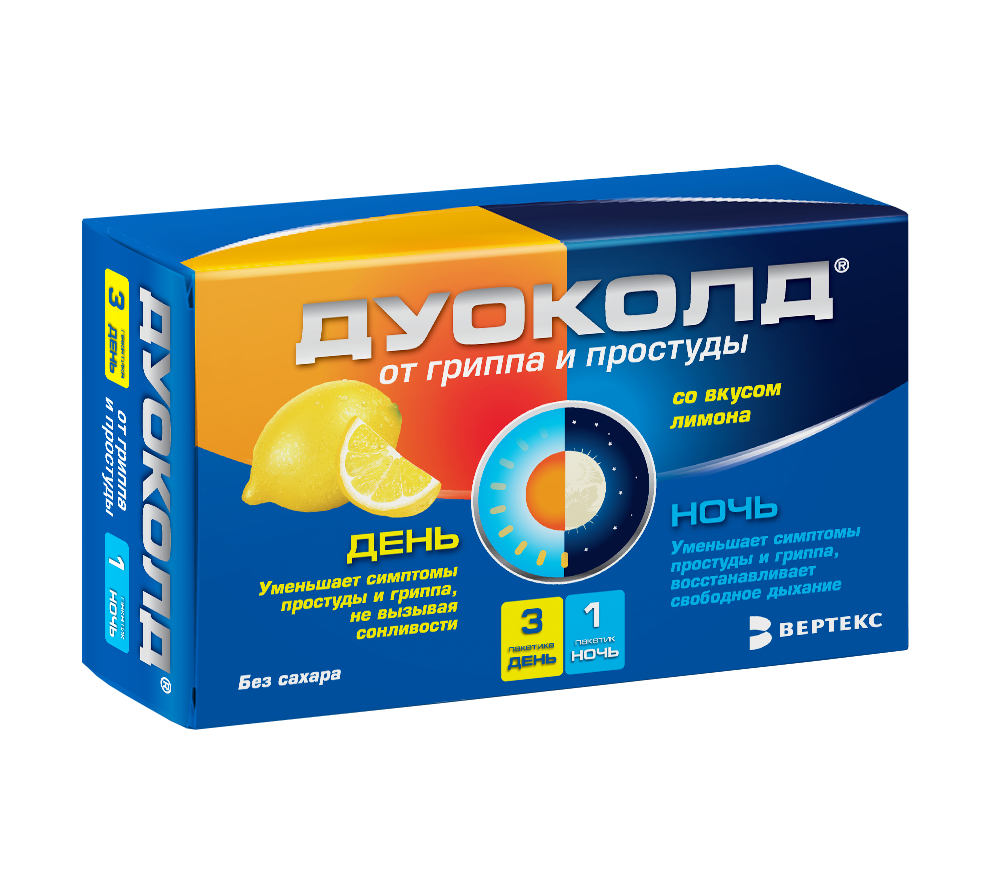 Дуоколд набор порошков для приготовления раствора для приёма внутрь со вкусом лимона пакетики 5г день №3 + ночь №1