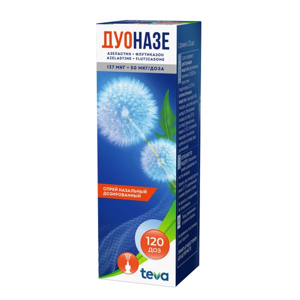 Препарат Дуоназе содержит действующие вещества азеластин и флутиказон. Препарат Дуоназе относится к группе препаратов для лечения заболеваний носа.