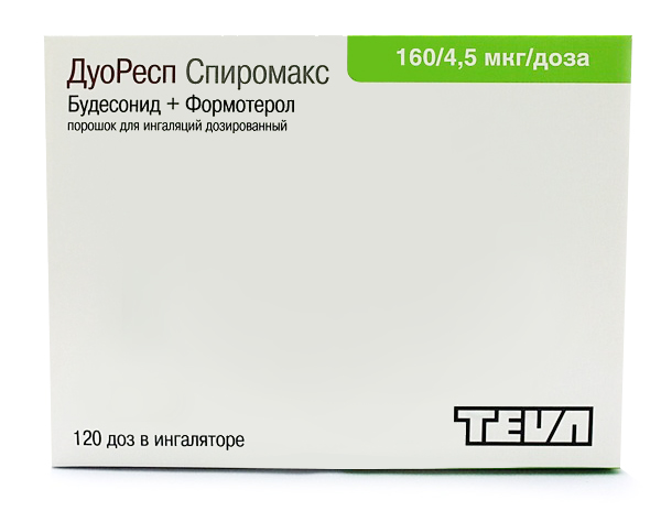 ДуоРесп Спиромакс порошок для ингаляций дозированный 160/4,5мкг/доза ингалятор 120доз №1