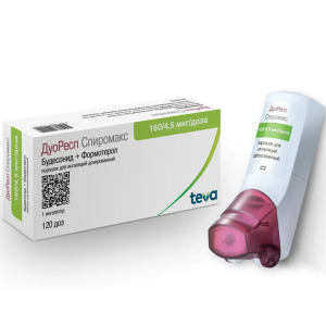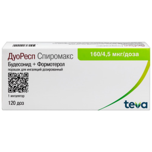 ДуоРесп Спиромакс порошок для ингаляций дозированный 160мкг+4,5мкг/доза ингалятор 120доз №1