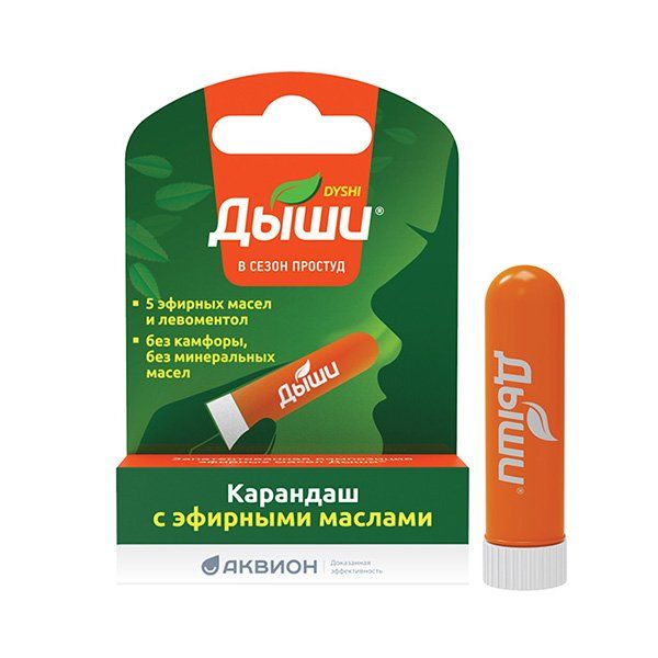 Карандаш-ингалятор Дыши® – это простой и удобный способ проведения пассивных ингаляций при помощи эфирных масел. Внутри пластикового карандаша на носителе находится смесь полностью натуральных эфирных масел с противовирусными, антибактериальными, противовоспалительными и тонизирующими свойствами.