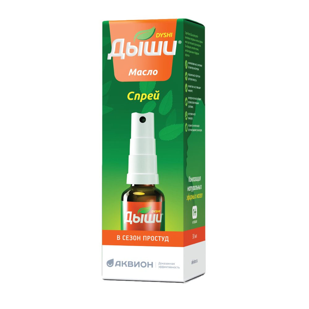 Спрей Масло Дыши остановит простуду в самом начале и защитит всю семью. Масло Дыши – это композиция натуральных эфирных масел, обладающих антисептическими, противовоспалительными и тонизирующими свойствами. Пары эфирных масел обеззараживают вдыхаемый воздух и тем самым препятствуют распространению болезнетворных вирусов и бактерий. Помните, масло Дыши эффективно только на ранних стадиях простуды и гриппа. Если болезнь в разгаре, не стоит ожидать от него чуда. Но даже в такой ситуации пользоваться маслом Дыши необходимо – для облегчения симптомов, а также для профилактики простудных заболеваний у остальных членов семьи.