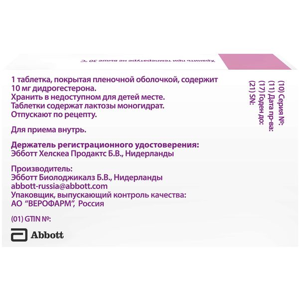 активное вещество: дидрогестерон 10 мг.
