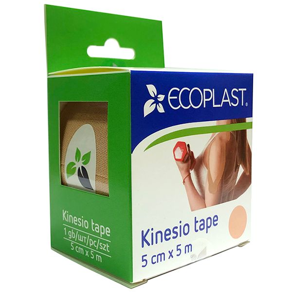 ECOPLAST КИНЕЗИО ТЕЙП 5СМХ5М - представляет собой эластичную хлопковую ленту на стойкой клеевой основе с небольшой долей спандекса.