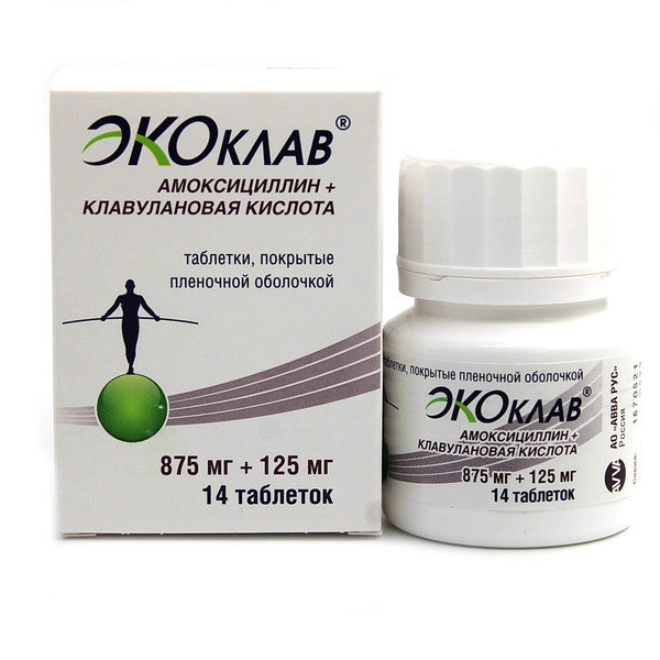 Экоклав таблетки покрытые плёночной оболочкой 875мг+125мг №14