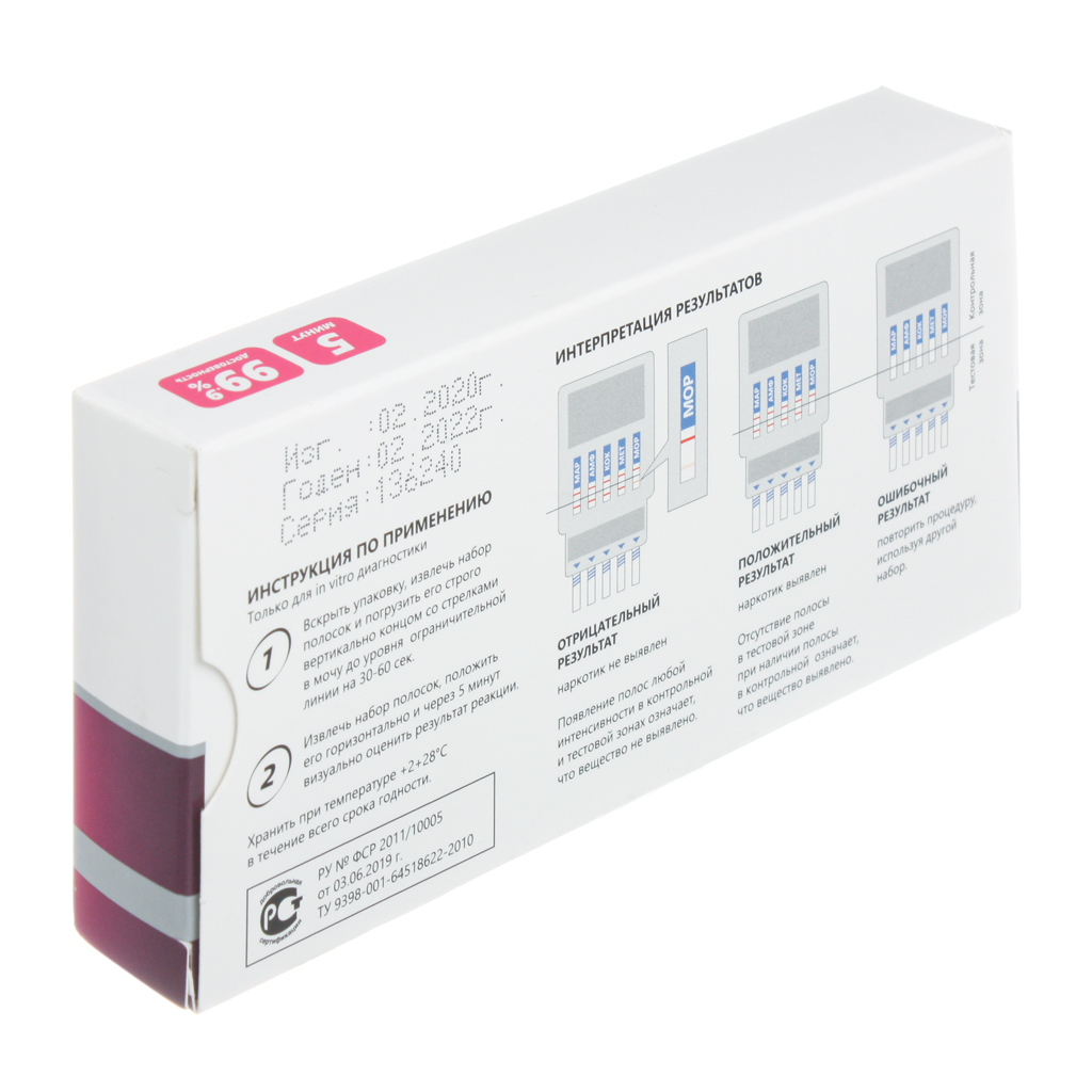 Набор ИммуноХром-НАРКО-Экспресс предназначен для in vitro-одноэтапного быстрого качественного определения 10 наркотических соединений.