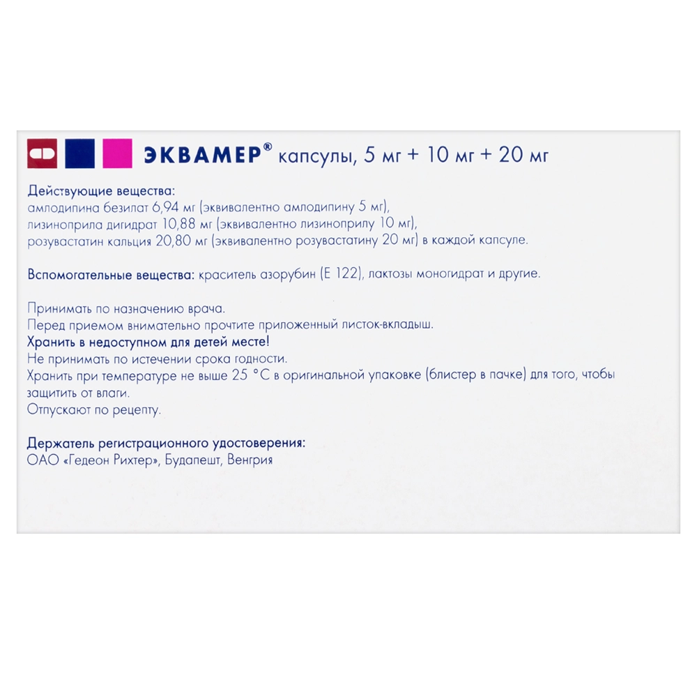 Купить Эквамер капсулы 5мг+10мг+20мг №30 по низкой цене