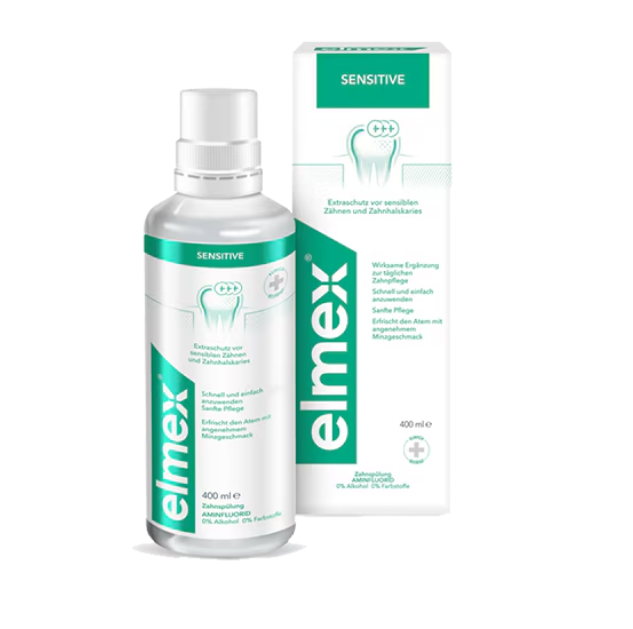 Ополаскиватель для полости рта elmex® Сенситив с аминофторидом обеспечивает интенсивную защиту против повышенной чувствительности зубов и пришеечного кариеса. Формула без спирта для бережного ухода обеспечивает эффективную защиту от кариеса.