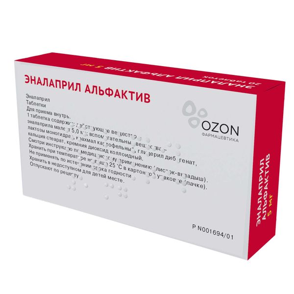 Одна таблетка 5 ;мг содержит активного вещества ;эналаприла ;малеата — 5 ;мг.