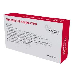 Эналаприл ;— антигипертензивный препарат, из группы ингибиторов АПФ. Эналаприл является «пролекарством»: в результате его гидролиза образуется эналаприлат, который и ингибирует АПФ. Механизм его действия связан с уменьшением образования из ангиотензина I ангиотензина II, снижение содержания которого ведёт к прямому уменьшению выделения альдостерона. При этом понижается общее периферическое сосудистое сопротивление, систолическое и диастолическое артериальное давление (АД), пост — и преднагрузка на миокард.