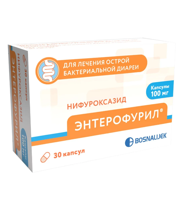 Дети 3–7 лет: по 1 капсуле × 3 раза в сутки (200 мг × 3 раза в сутки, всего 600 мг нифуроксазида/сут).