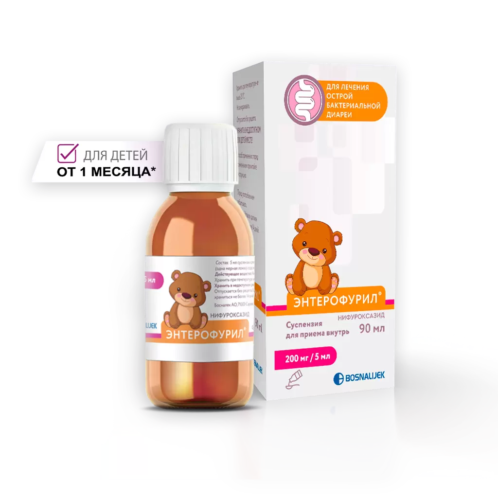 Энтерофурил суспензия для приёма внутрь 200мг/5мл флакон 90мл