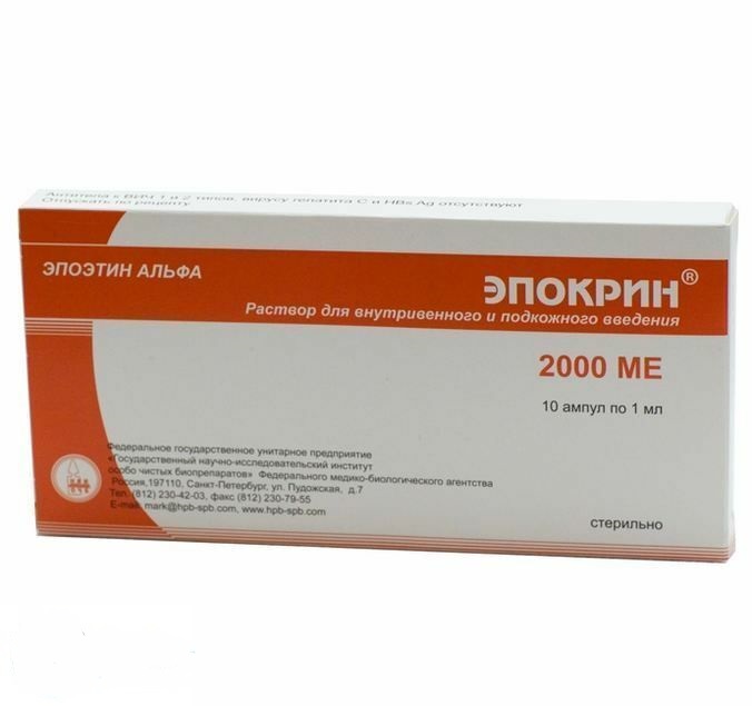 Профилактика и лечение анемии у больных с ВИЧ инфекцией: Внутривенное введение препарата Эпокрин® в дозе 100-150 МЕ/кг 3 раза в неделю является эффективным у ВИЧ-пациентов, получающих терапию зидовудином, при условии, что уровень сывороточного эндогенного эритропоэтина пациента менее 500 МЕ/мл, а доза зидовудина составляет менее 4200 мг/неделю. При подкожном введении доза препарата Эпокрин® может быть уменьшена в 1,5 раза.