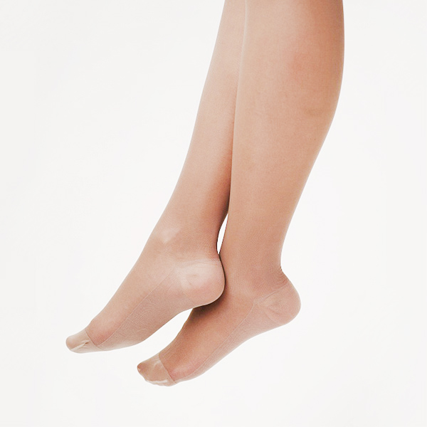 - Надеть изделие на стопу, убедиться, что пятка чулка правильно расположена на ноге.